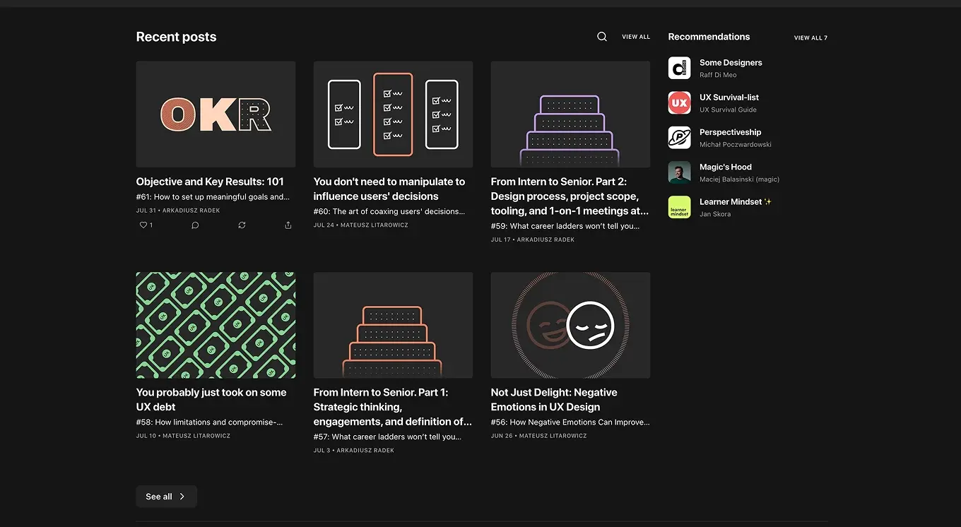 Fundament — это не просто рассылка о дизайне, а настоящий путеводитель по бизнес-стороне продуктового UX. В отличие от большинства блогов и бюллетеней, которые фокусируются только на интерфейсах и инструментах, Fundament поднимает вопросы карьеры, индустрии и мышления дизайнера. Его ведут два опытных специалиста с двадцатилетним бэкграундом, поэтому тексты ощущаются как дружеские советы коллеги «на голову старше».