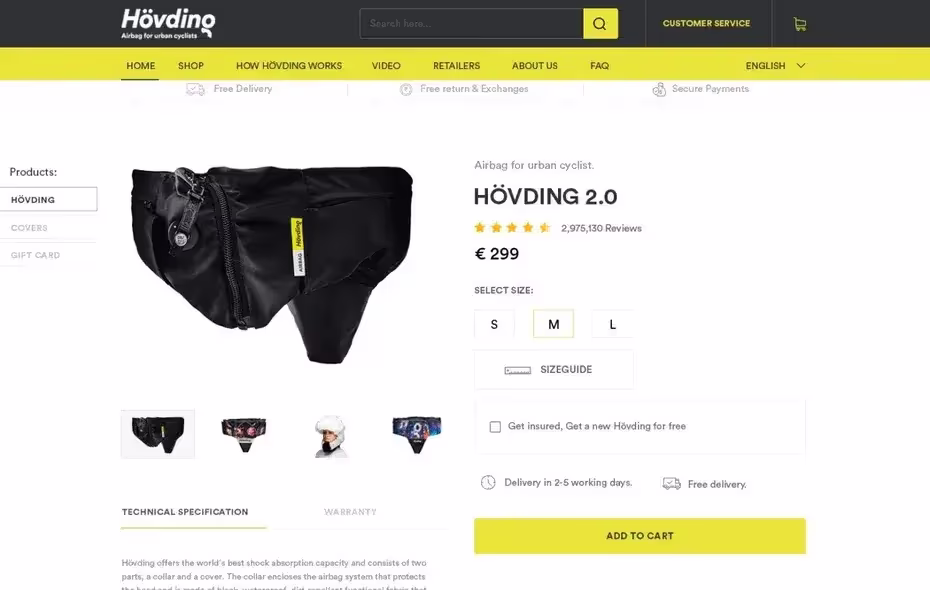 Физические продукты находятся в заведомо проигрышном положении в цифровом пространстве, поэтому цель продуктовой страницы в этом случае — заменить пользователям обычный магазин. Чтобы достичь этого, особое внимание уделяется визуалу, детальным описаниям продуктов и разъяснению правил доставки и политики возврата товара.
