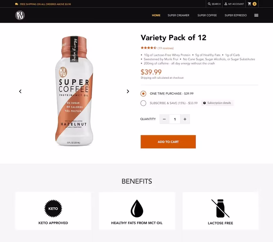 В то же время, продуктовая страница может стать подходящим местом для выражения личности бренда и творческой свободы. Дизайн на картинке выше отлично передает характер бренда. Кроме того, никогда не поздно полностью изменить дизайн сайта, если это поможет сделать страницу продукта эффективнее.