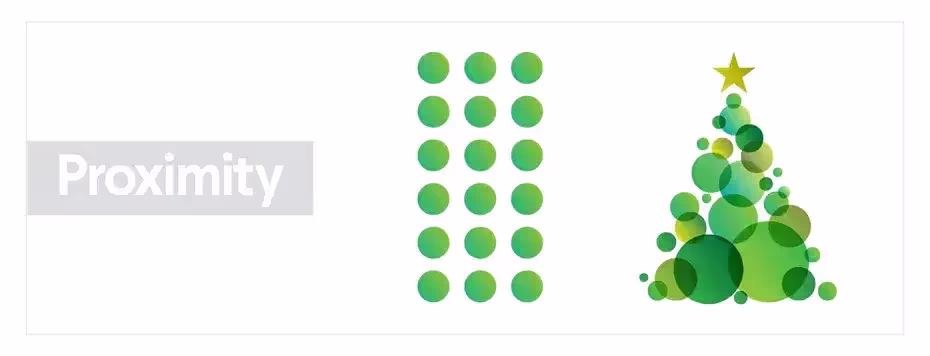 Гештальт-принцип близости говорит о том, что мы воспринимаем объекты как часть группы, если они расположены близко друг к другу.