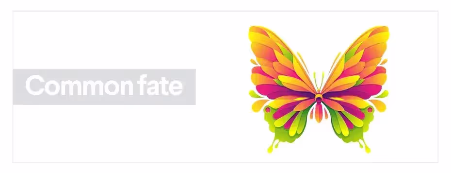 Гештальт-принцип общей судьбы говорит о том, что объекты воспринимаются как часть группы, если они движутся в одном направлении. Иначе говоря, мы полагаем, что между объектами, которые расположены вдоль одной невидимой линии, существует взаимосвязь. Например, нам кажется, что различные части крыльев бабочки на картинке ниже двигаются в одну сторону, хотя они и состоят из абстрактных форм.