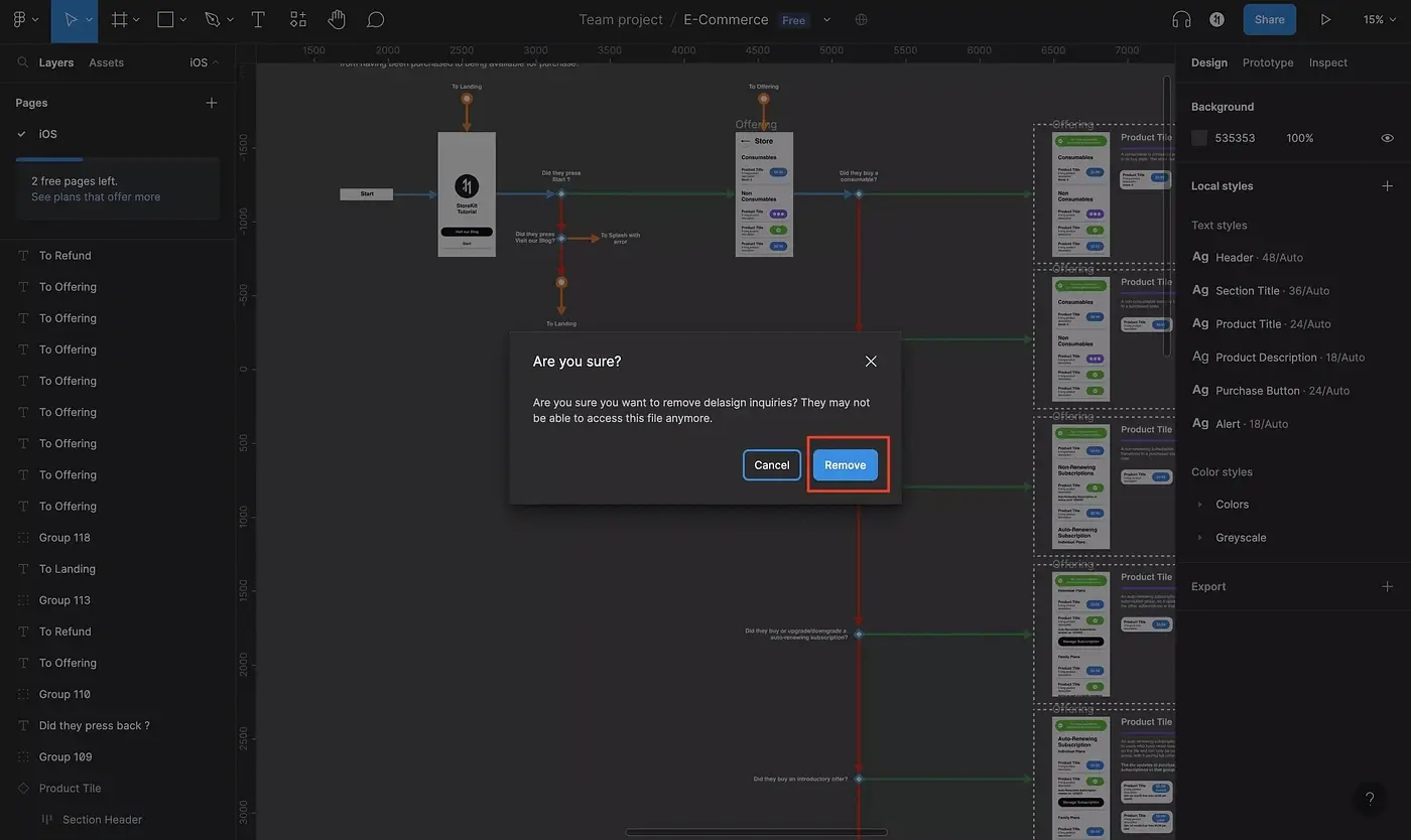 Figma не просто спрашивает, уверен ли пользователь. Она описывает конкретное действие и последствия.