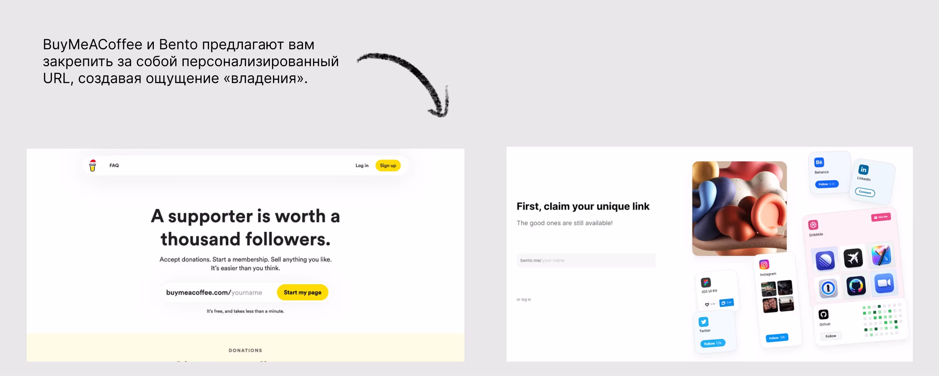 Вот почему такие продукты, как Calendly, BuyMeACoffee и Bento, предлагают пользователям выбрать персональный URL во время регистрации. Вы будто сразу становитесь его «владельцем», что побуждает вас завершить процесс регистрации, чтобы не потерять «своё».