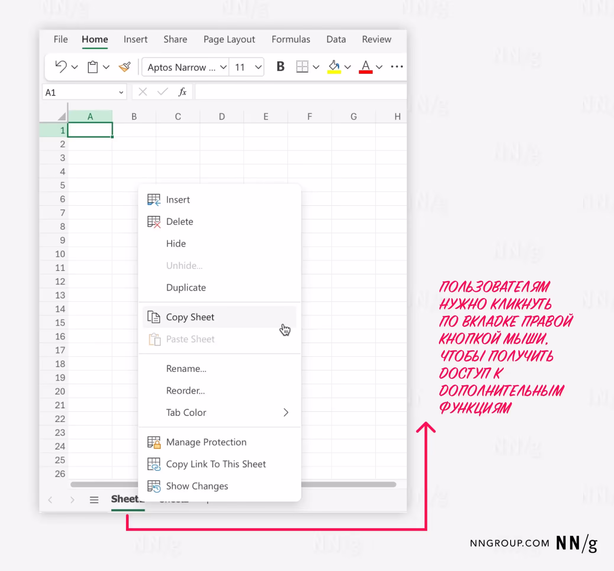 В сложных приложениях пользователям могут понадобиться дополнительные функции для работы с вкладками (добавление, копирование, удаление и т.д.). Обозначьте наличие этих функций, встроив элементы управления, например, иконку, открывающую выпадающий список, прямо внутрь вкладки. Проведите несколько тестов, чтобы оценить эффективность такого подхода.