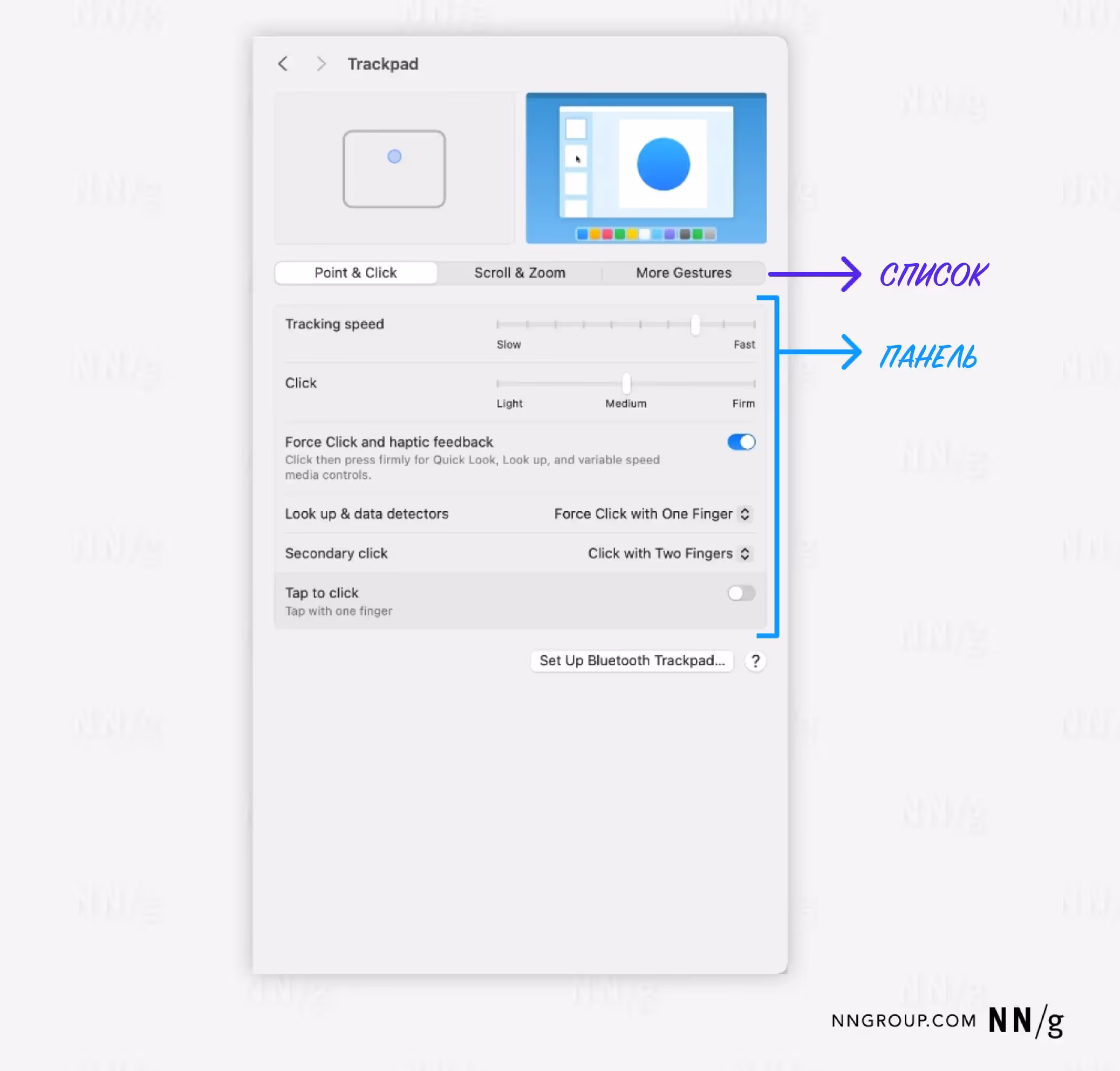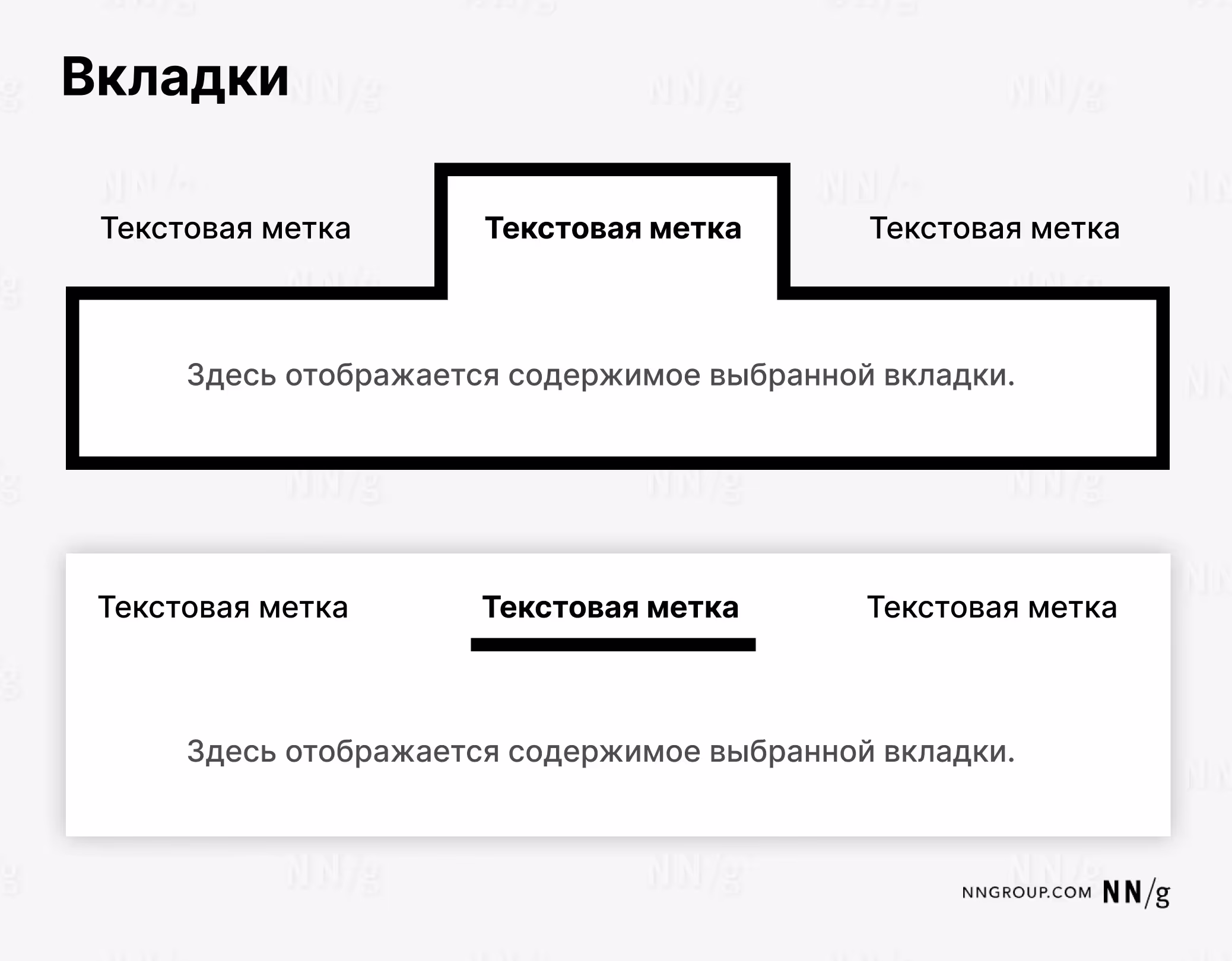 - Текстовые метки — краткое описание контента внутри вкладок.