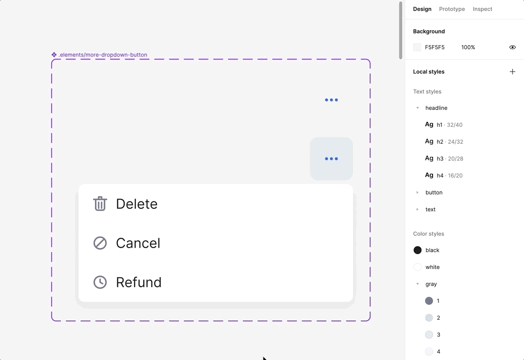 Шаг 1. Создайте компонент кнопки выпадающего списка с Auto Layout и вариантами состояния по умолчанию (внутри только кнопка) и активного состояния (кнопка в нажатом состоянии и выпадающее меню).