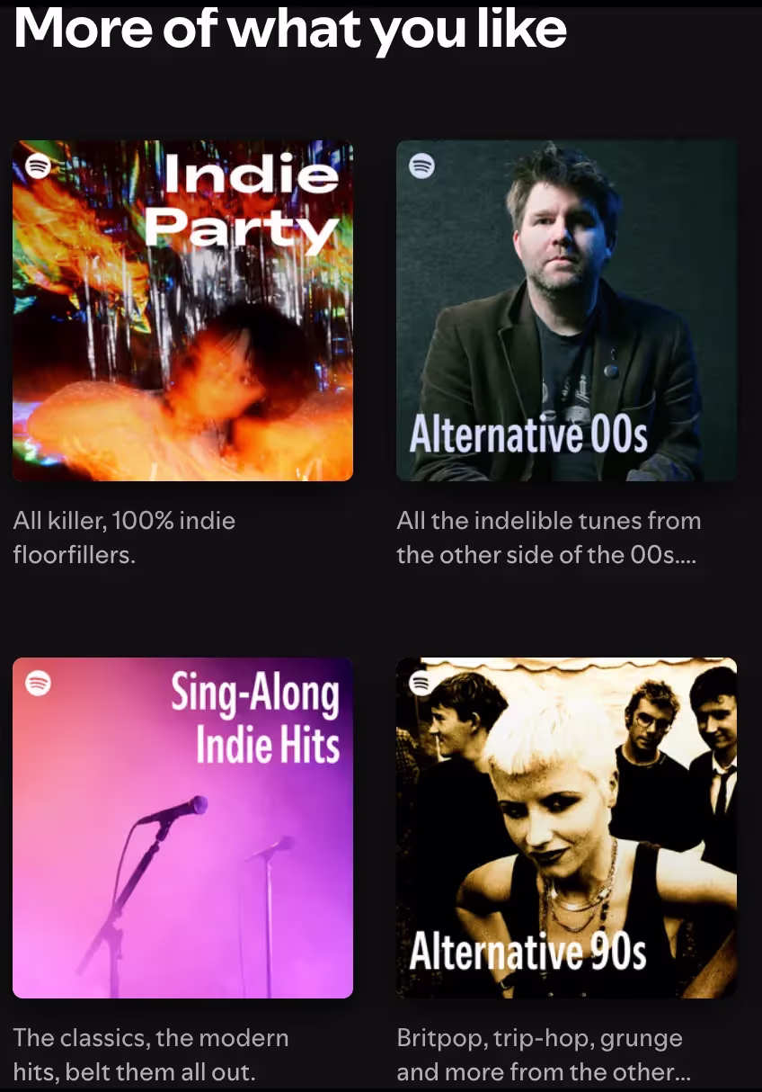 Пример — готовые персонализированные плейлисты Spotify: они создаются автоматически с учетом ваших вкусов и истории прослушивания.