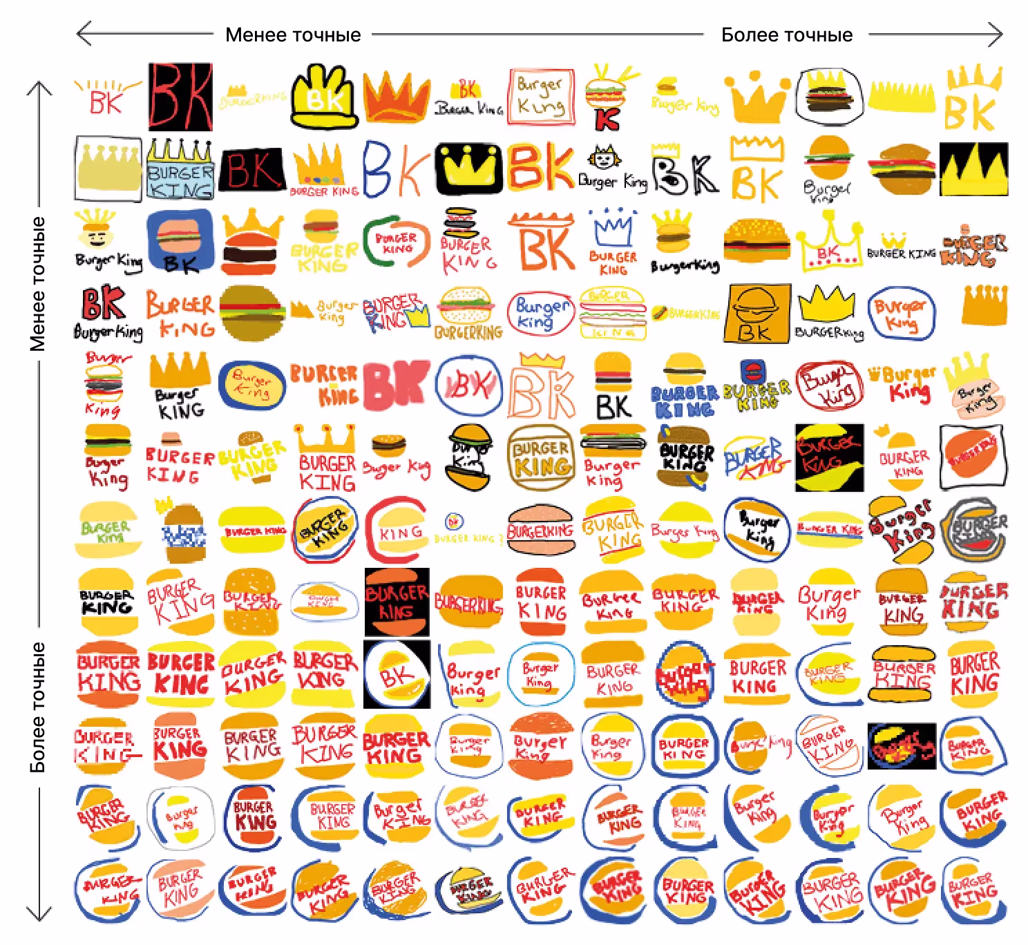 Представьте, что вас попросили нарисовать логотип известного бренда, например, Burger King, по памяти. Сможете ли вы точно воспроизвести фирменные цвета и детали? Именно такой эксперимент провела компания signs.com.