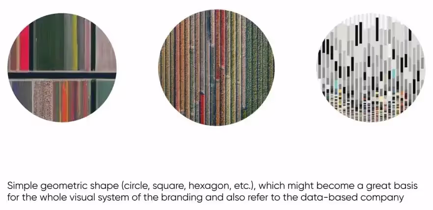 По результатам творческого поиска мы предложили клиенту несколько вариантов фирменного знака, отражающих эту идею. Все они состояли из линий и точек, образующих абстрактные формы и вызывающих ассоциации с цифровой обработкой и визуализацией данных, а также напоминающих вид на поля с высоты птичьего полета. Базовой геометрической формой стал круг.