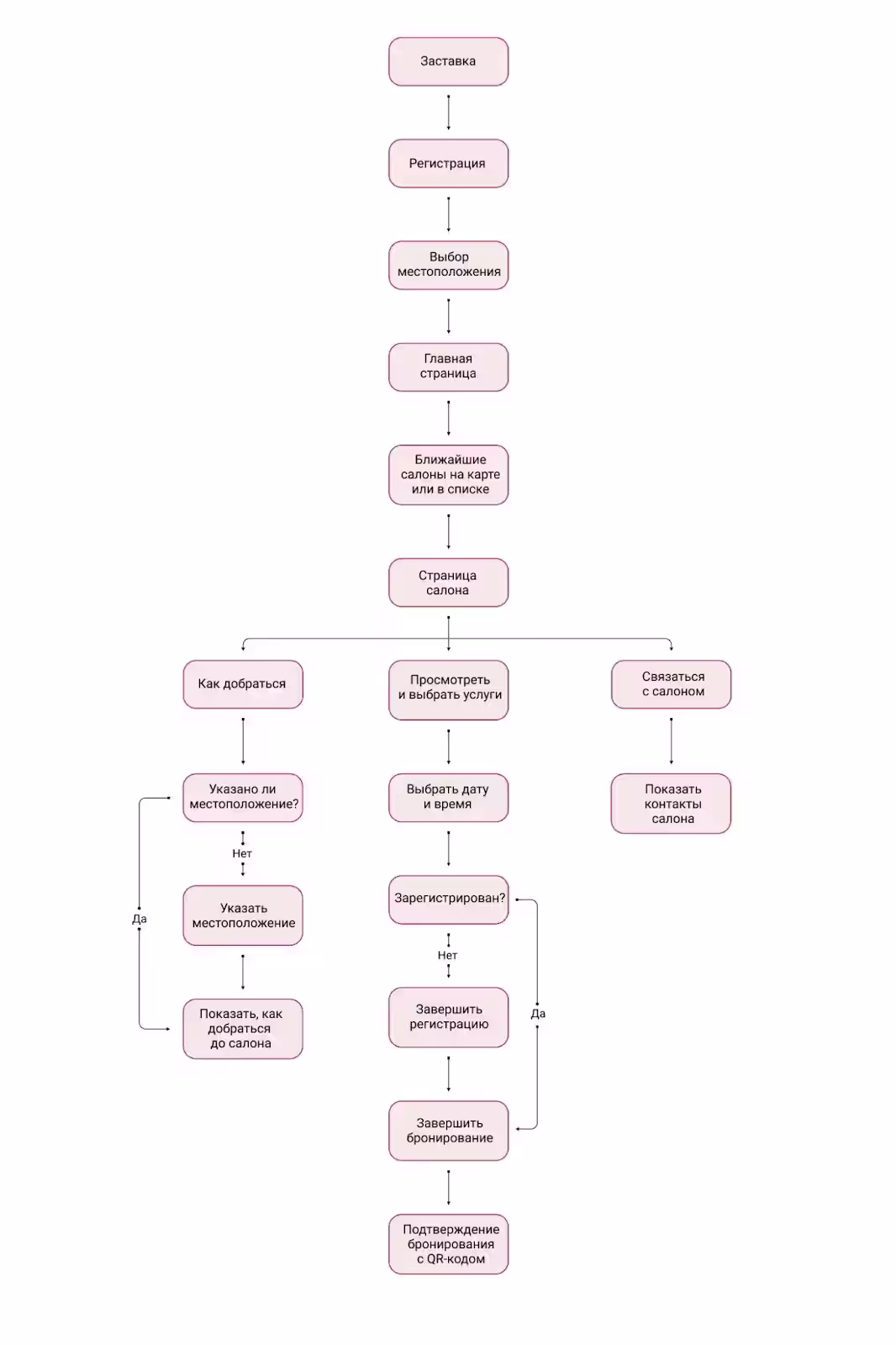 Цель пользователя — с легкостью находить свободное время и бронировать посещения в салонах, расположенных поблизости. Процесс должен быть хорошо продуман и организован на всех этапах: от поиска до онлайн-записи.