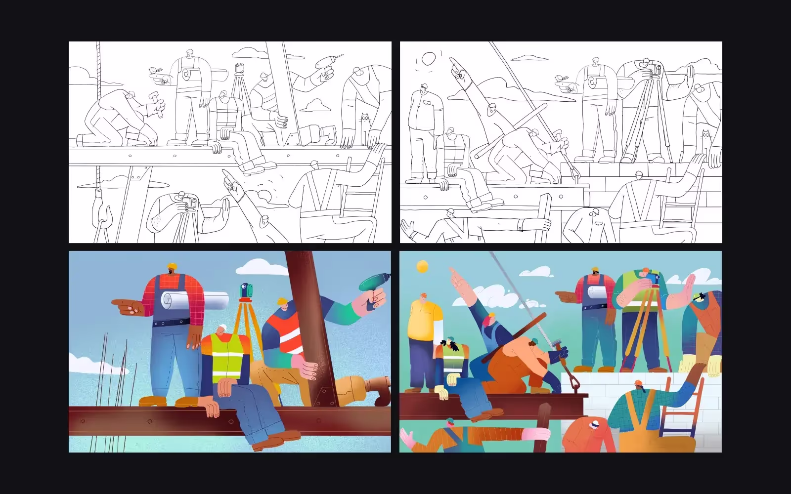 Брендинг и дизайны Tubik обычно отличаются яркой графикой и сочетанием разнообразных иллюстраций — поиски паттерна для фона также шли в этом направлении. В результате команда нашла несколько стилей, подходящих для создания паттерна, который бы эффективно работал на экранах разных размеров и вписывался в общую концепцию.
