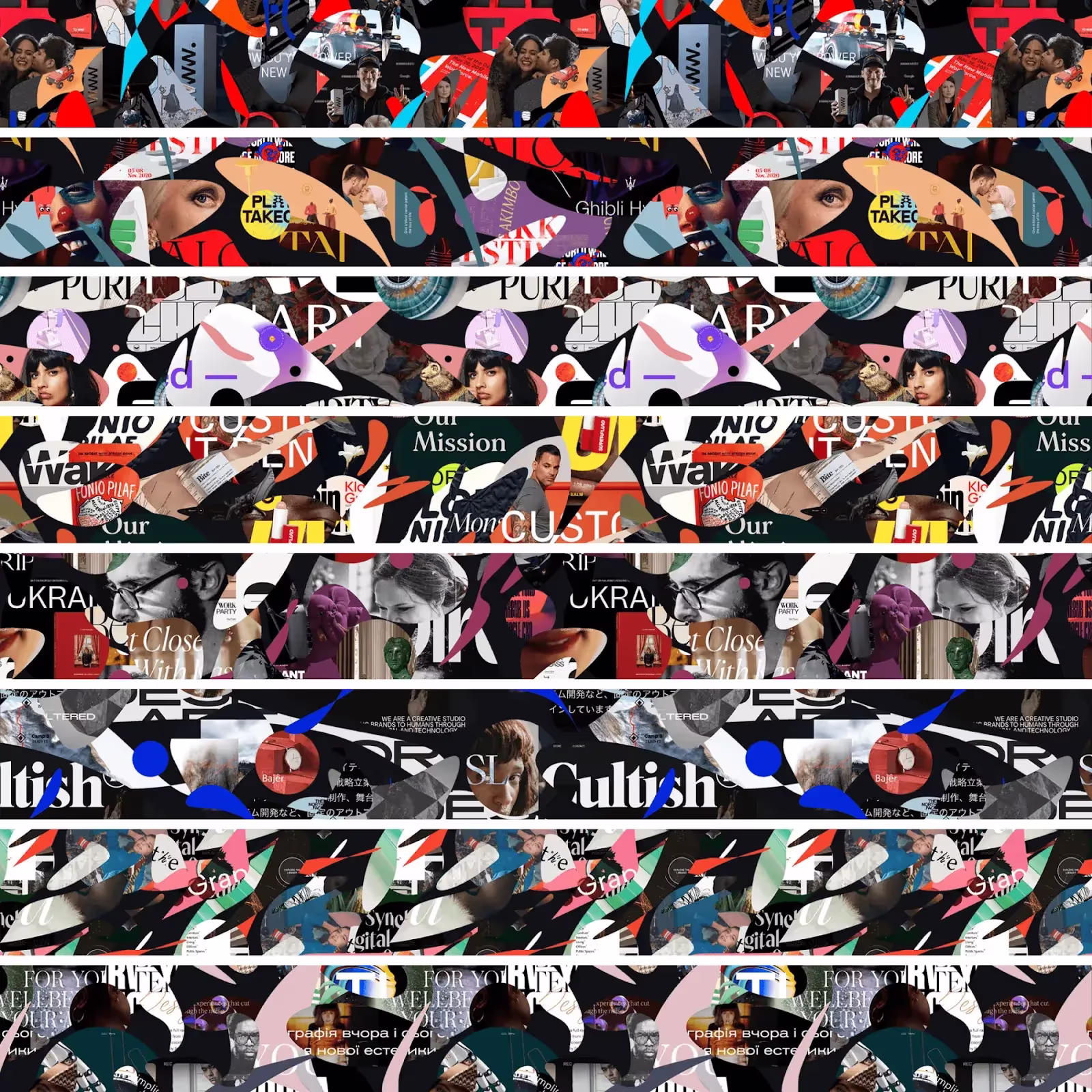 Страница каждой номинации может похвастаться своим уникальным фоновым паттерном, составленным из фрагментов работ участников. Таким образом, мы решили отдать должное проектам, которые были созданы пользователями Awwwards и вдохновляли их в течение года.