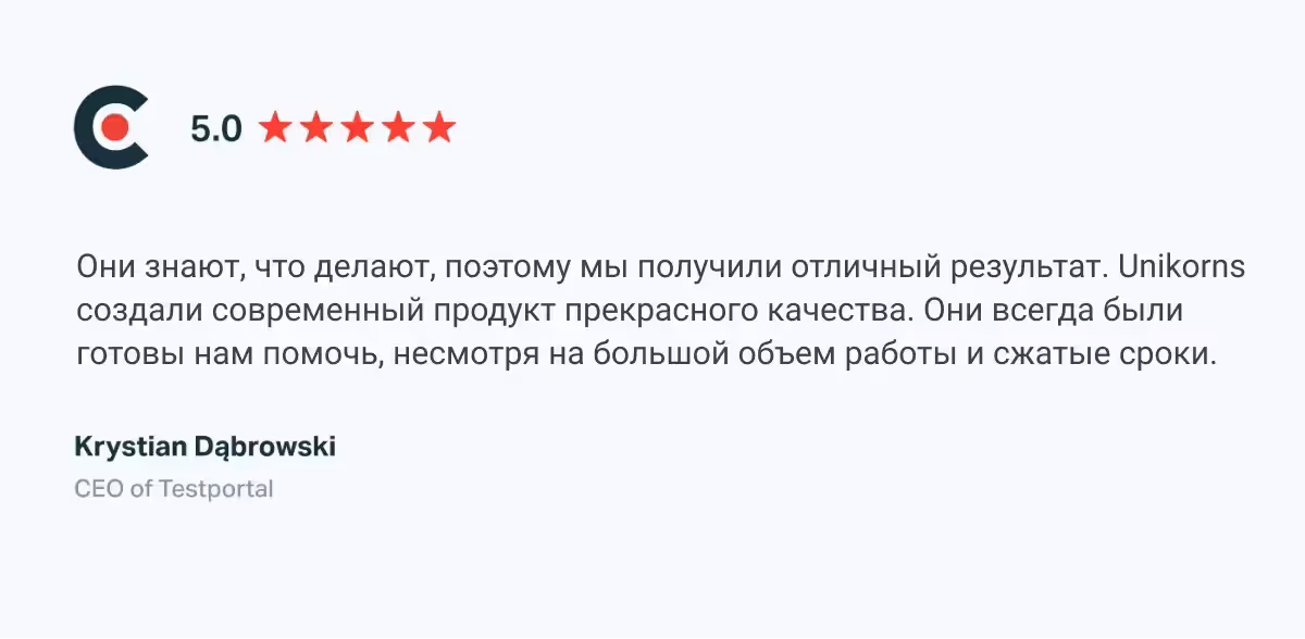 Конечно же, довольный клиент и 5 звезд на Clutch!