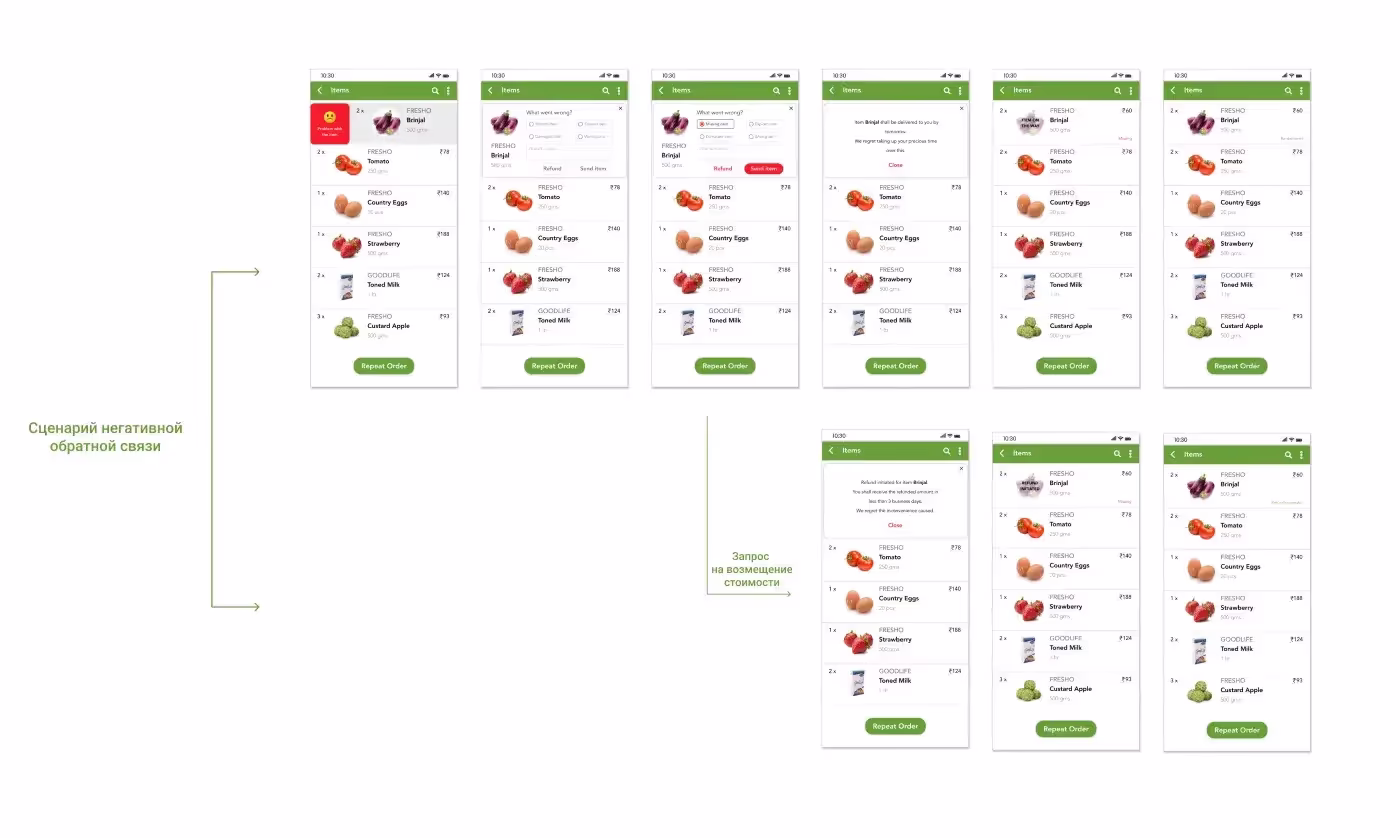 UI-решения и процесс разработки экранов, отвечающих за опыт пользователей после доставки заказа