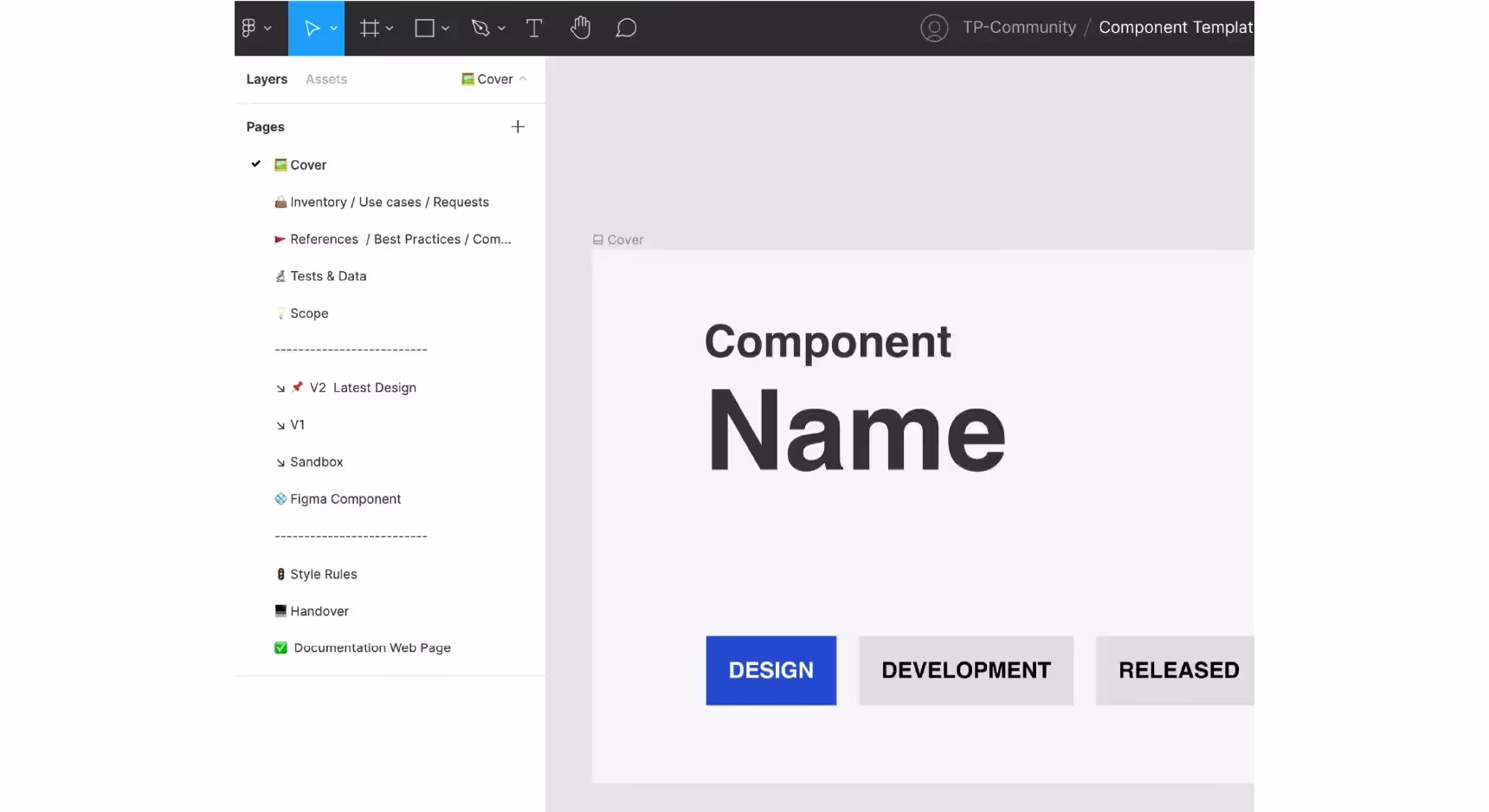 Сиал рекомендует создать простую обложку для каждого компонента. В Figma это позволяет сразу увидеть, где можно найти тот или иной компонент, и эффективнее ориентироваться в списке файлов.