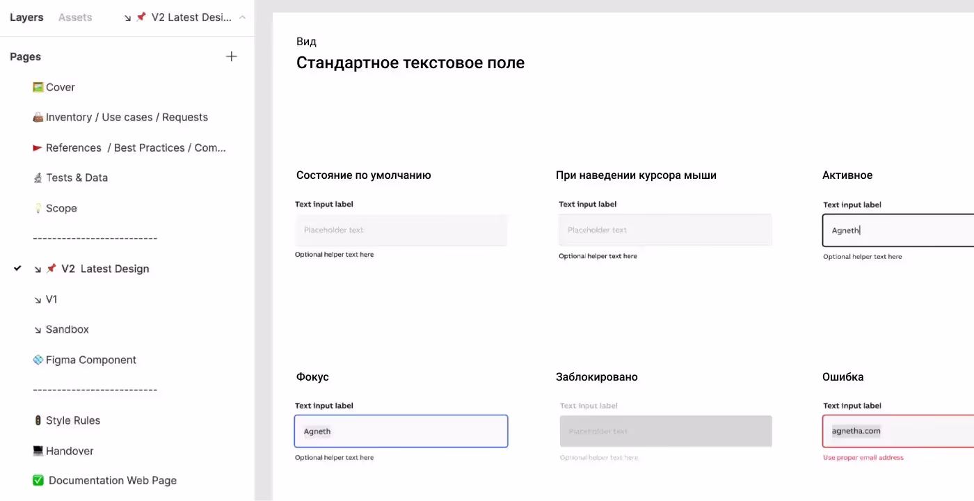 Страница компонента будет экспортирована в библиотеку дизайн-системы в Figma, и любой дизайнер сможет добавить его в свой проект. Если команда дизайнеров захочет внести изменения, они могут сделать это всего один раз, не меняя вручную каждый элемент.