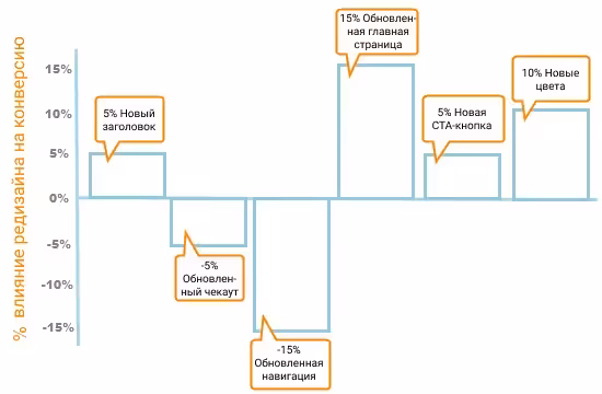 В ходе редизайна сайт зачастую меняется целиком. Это создает дополнительные трудности, поскольку некоторые изменения будут удачными, другие — нет, а последствия вторых обычно перекрывают последствия первых. Вам будет непросто узнать, какие именно доработки позитивно или негативно повлияли на продажи.
