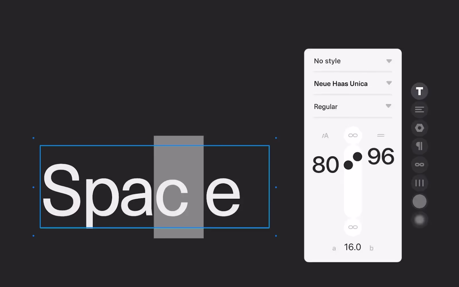 Числовой ввод, который регулирует интервал между всеми буквами, также может использоваться для настройки индивидуального интервала между двумя определенными символами.