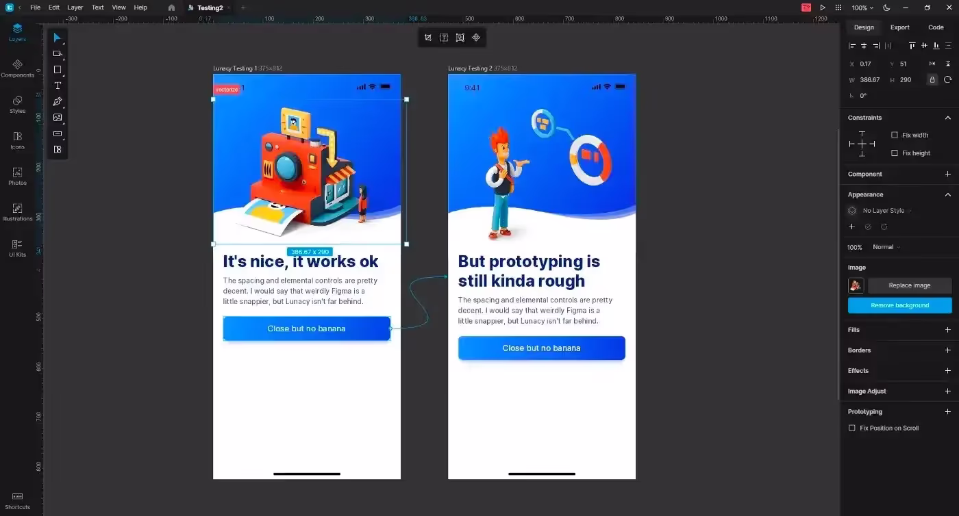 Чтобы быть максимально справедливым, я протестировал Lunacy бок о бок с Figma. Я хотел понять, как чувствовал бы себя дизайнер, желающий перейти с одной платформы на другую.