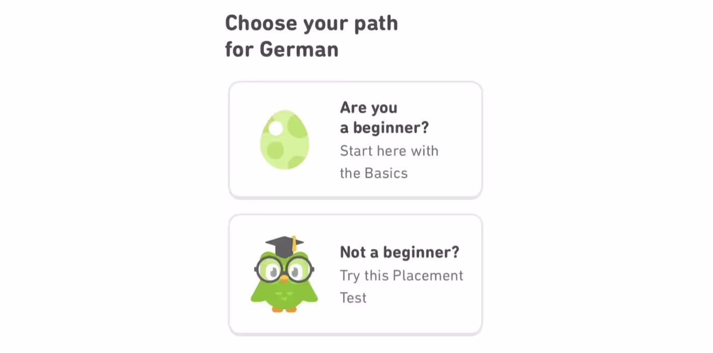 Такой подход использует Headspace: здесь есть разные виды медитаций, различающихся по уровню сложности. А в Duolingo вы проходите вступительный тест, который помогает подобрать подходящую программу для изучения того или иного языка.