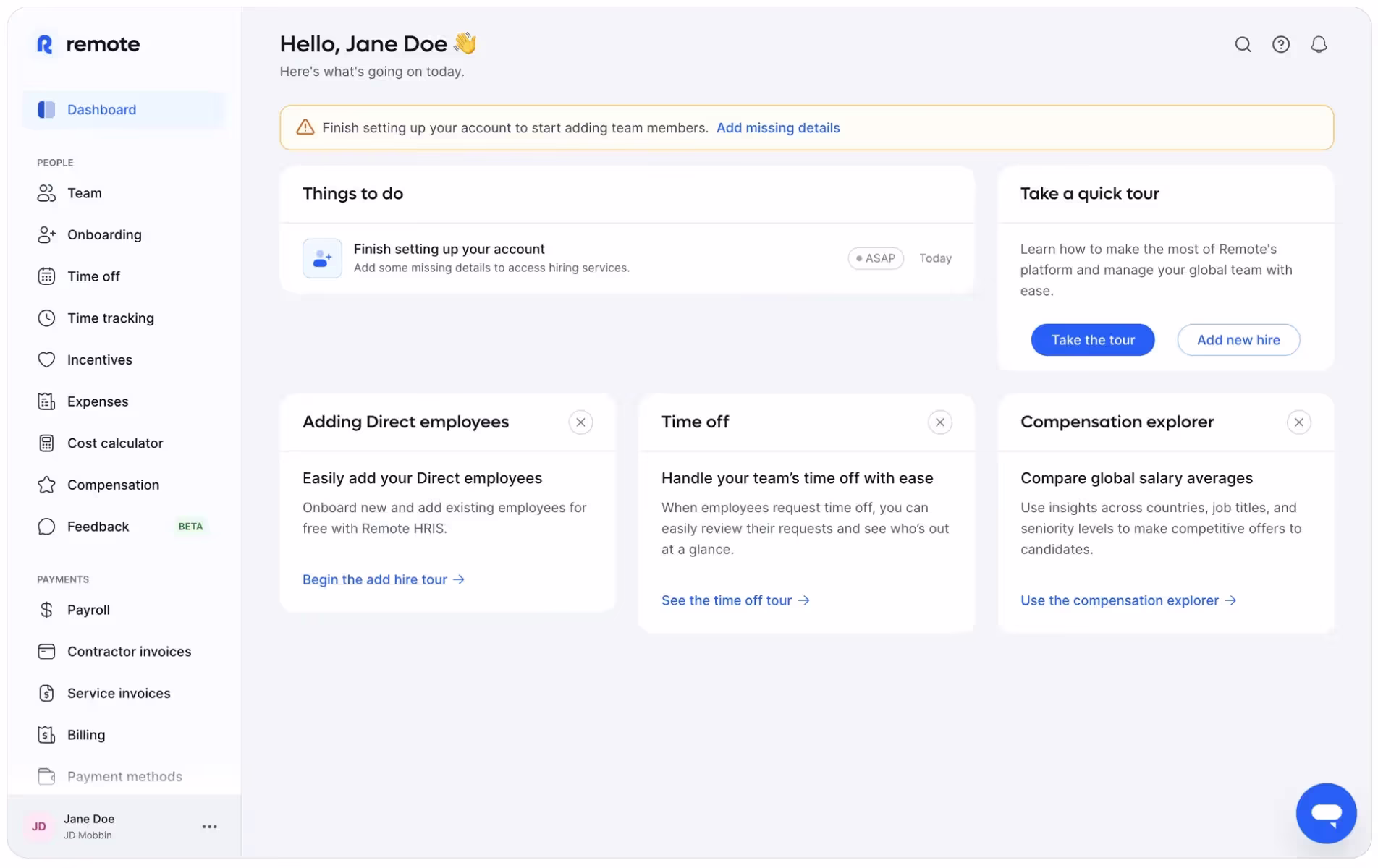 В примере ниже Remote эффективно использует механизмы второго типа, чтобы привлечь внимание к оповещению, сигнализирующему о недостающих данных. Желтый цвет ассоциируется с опасностью и намеренно не используется в других частях интерфейса, а удачное расположение гарантирует, что сообщение не останется незамеченным.