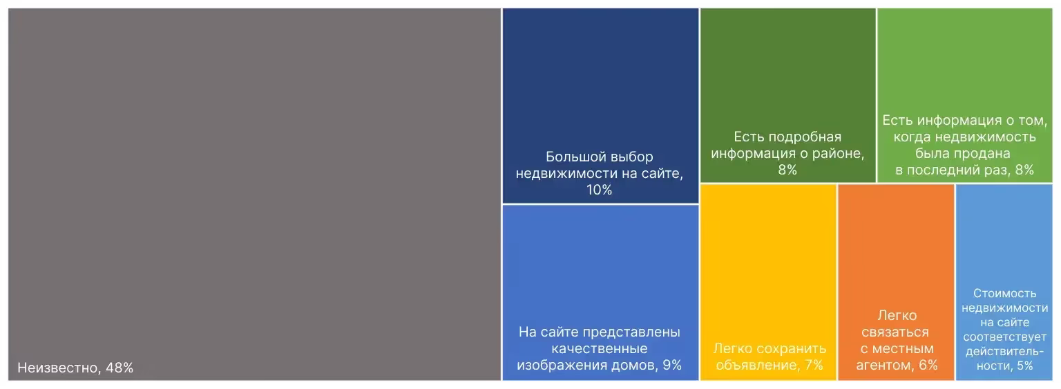 В отличие от других сайтов, показатель доверия Redfin улучшился по сравнению с исследованием 2016 года (у остальных он снизился), но у него по-прежнему один из самых низких показателей доверия в исследовании 2022 года.