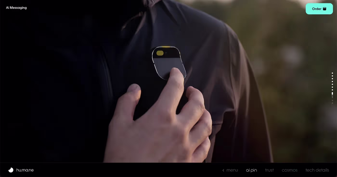 Несколько лет после появления Apple Watch в этой области не происходило ничего интересного. Однако недавно компания hu.ma.ne представила очень любопытное устройство — AI Pin («смартфон без экрана»). Я не уверен на 100 %, что оно завоюет рынок, но меня определенно восхищает оригинальный подход. Мне бы хотелось видеть больше подобных продуктов, использующих возможности искусственного интеллекта.