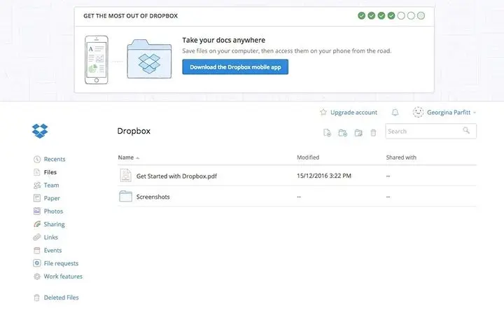 Например, Notion встречает вас пустой страницей с мигающим курсором. Аналогичным образом ведет себя и Dropbox. Вы загружаете файл, и все готово.