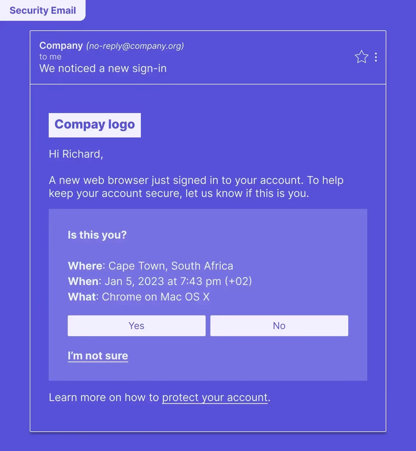 “Кто-то только что зашел в ваш аккаунт из нового браузера. Чтобы помочь нам обеспечить безопасность вашей учетной записи, сообщите, пожалуйста, вы это или нет.”