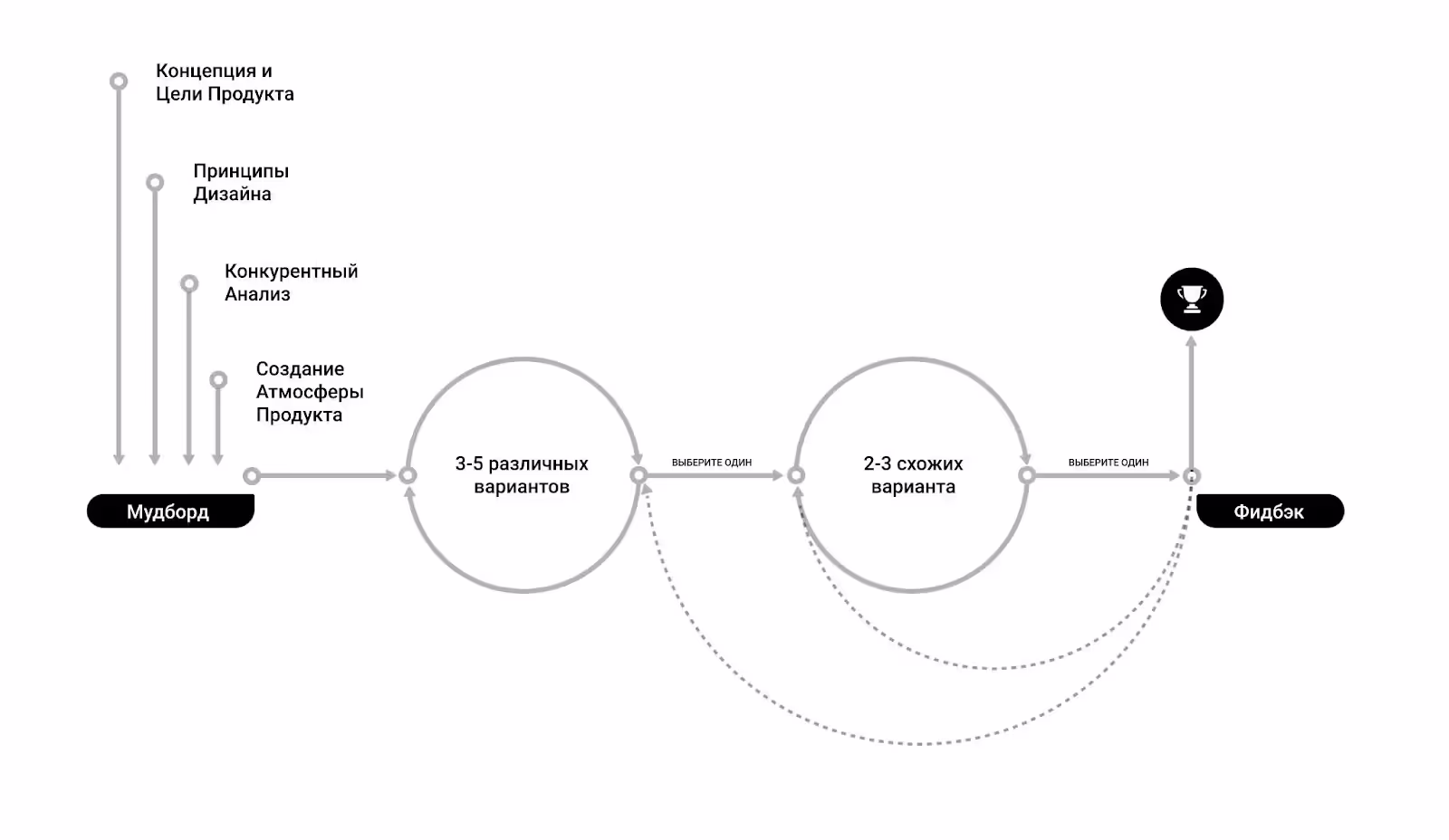 Это этап работы визуального дизайнера. После многих тестирований с пользователями появляется единое сильное визуальное направление. Его должны поддержать все члены команды и заинтересованные стороны. Это конечный продукт данного процесса.