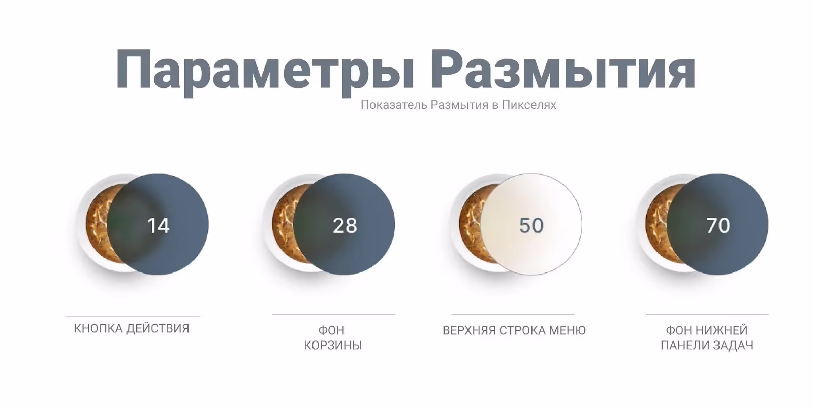 Меня очень вдохновляют размытия, которые использует Big Sur, для создания иерархии за счет наложения слоев. Fittle ограничивается применением тени для базовых и самых верхних слоев с «тарелками». Все промежуточные слои будут размыты для создания иерархии.