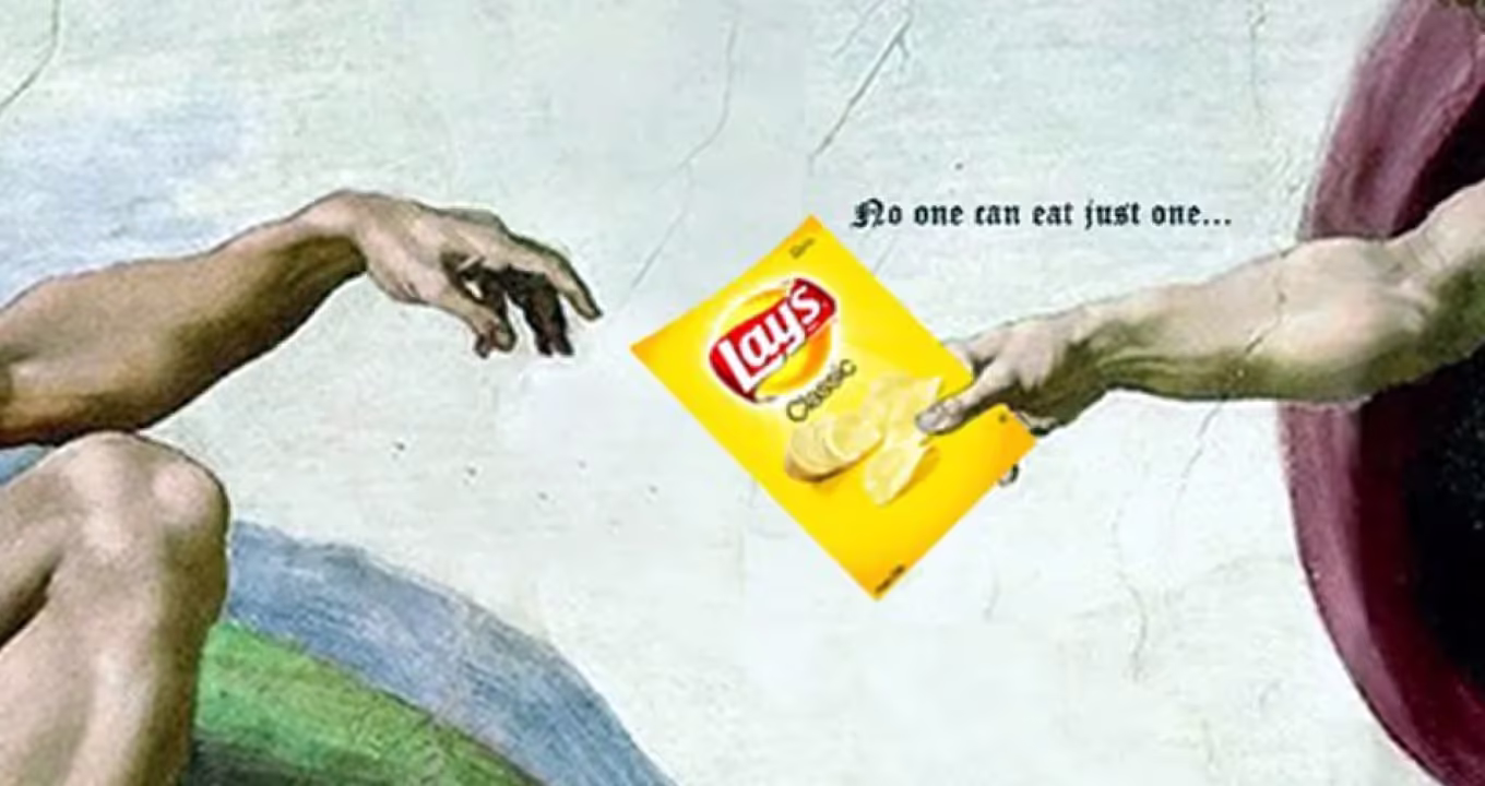Также не стесняйтесь обращаться к искусству при создании своей концепции. Сегодня довольно распространенным методом является использование шедевра мирового искусства как основы для дизайн-концепции. Вот, например, реклама чипсов, за основу которой взяли картину Микеланджело. Также этот метод может помочь сэкономить ресурсы, к примеру, на фотосъемке. Для применения этой техники можно использовать бесплатный фотосток Artvee.