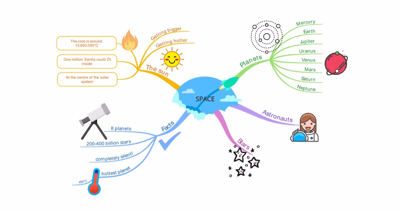 Можно использовать ассоциативные словари или Pinterest, чтобы расширить список слов и добавить образы. Существуют различные сервисы для создания ментальных карт, такие как Mindmeister.com, Mind42.com и Mindnode.com.