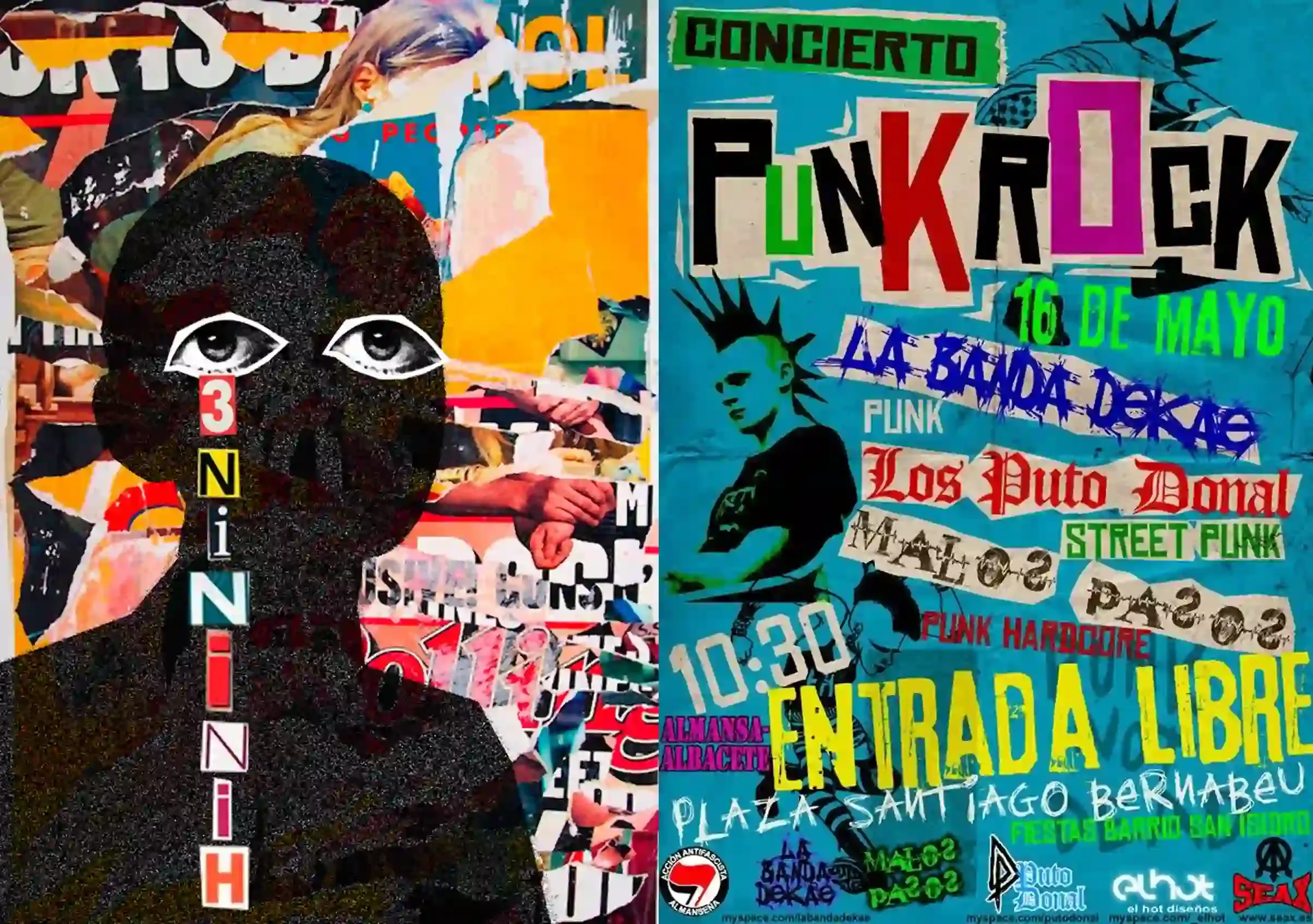 Параллельно «кривой» дизайн развивался в зинах и панк-культуре. Самодельные плакаты и постеры печатались на ксероксах, собирались из обрезков типографики, коллажировались вручную. Ошибки — криво вырезанный текст, пятна краски, неидеальная разметка — становились частью языка. Это был протест против глянцевой коммерческой картинки, попытка сказать: «Мы делаем сами, как хотим, и в этом — сила».