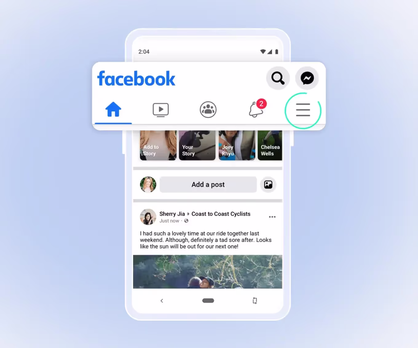 Этот пример демонстрирует возможности сочетания различных видов мобильной навигации. Facebook использует «гамбургер», верхнюю и нижнюю панели навигации. Меню «гамбургер» в данном случае прячет дополнительные элементы навигации, тем самым сохраняя читаемость верхней панели.