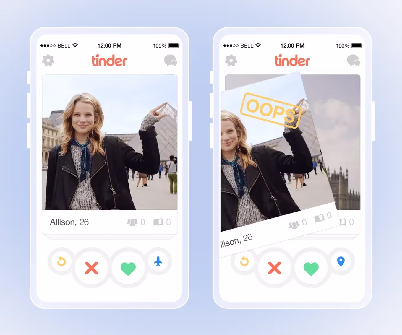 Навигация с помощью жестов была изобретена не Tinder, но приложение определенно принесло ее в массы. Свайп влево или вправо — это динамика, простота и увлекательность. Независимо от того, как вы относитесь к приложению, его дизайн мобильной навигации определенно заслуживает внимания.