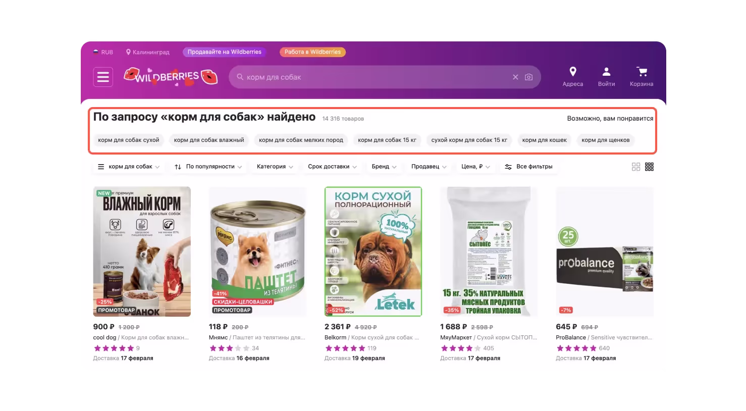 Пример использования привычных шаблонов расположения таких элементов, как корзина, личный кабинет, поисковая строка и меню, в дизайне интерфейсов маркетплейсов.