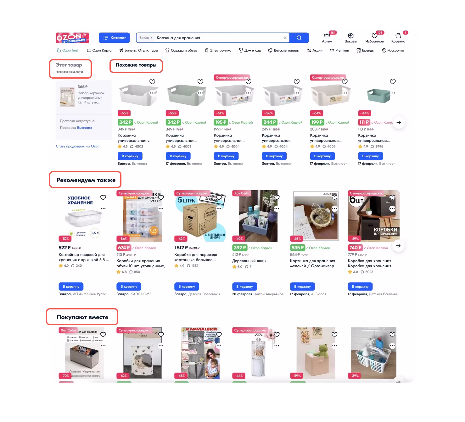 При разработке интерфейса необходимо продумать все возможные пути клиента. Ни при каких условиях не должно встречаться так называемых тупиков сценариев. Даже если пользователь доходит до страницы отсутствующего товара, ему необходимо предоставить альтернативные пути. Например, в карточке товара, который закончился, необходимо разместить ссылку на релевантные товары или разделы, которые могут быть потенциально интересны пользователю.