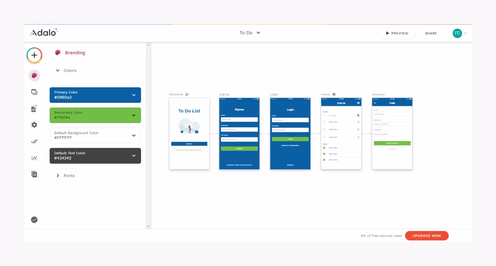 Как выглядит процесс создания мобильного приложения на платформе Adalo: