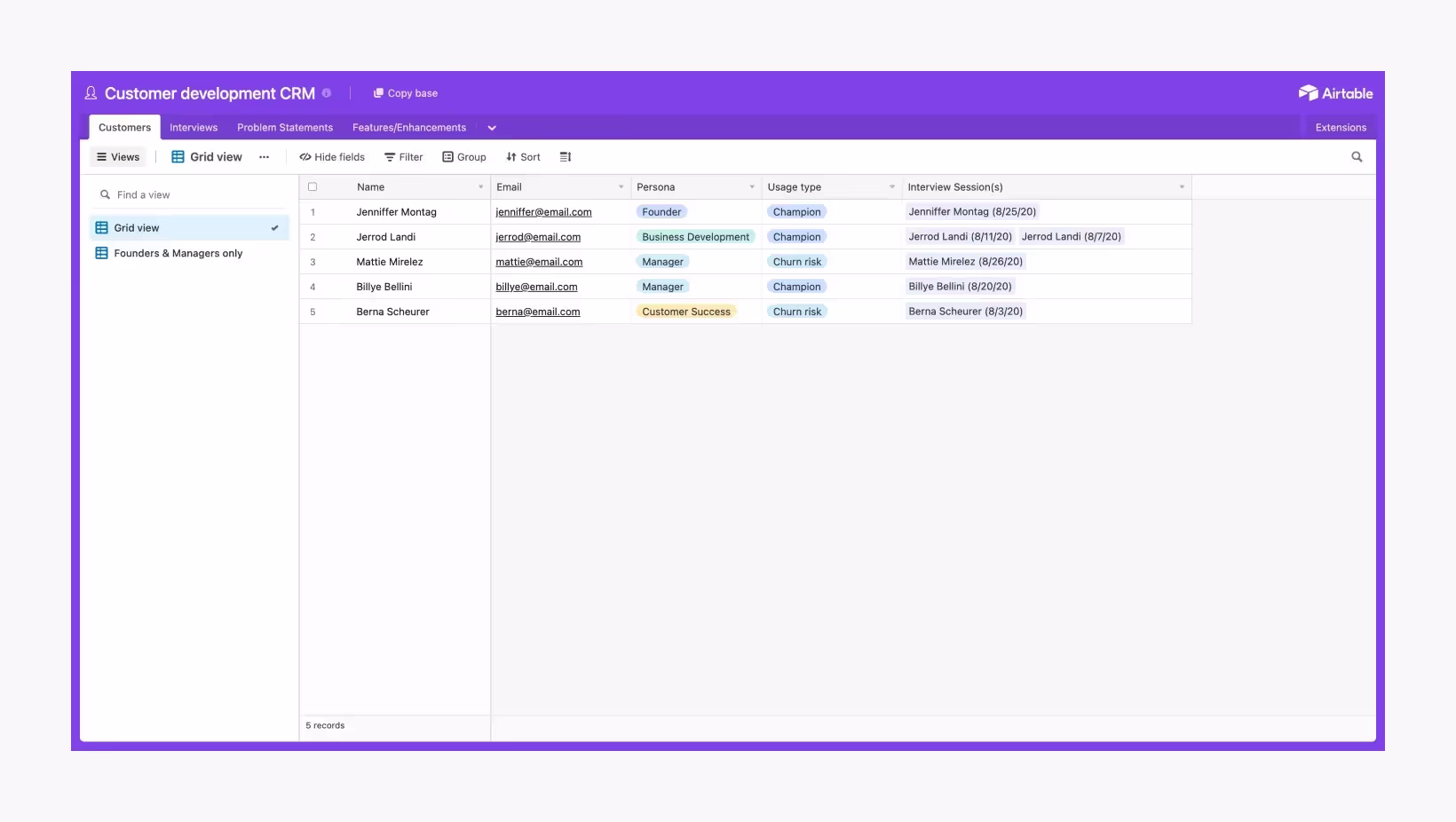 - Airtable. Сервис позволяет создавать большие базы данных, на основе которых другие платформы могут собирать приложения. С помощью этого сервиса удобно анализировать финансовую отчетность компании, а также создавать демоверсию продукта.