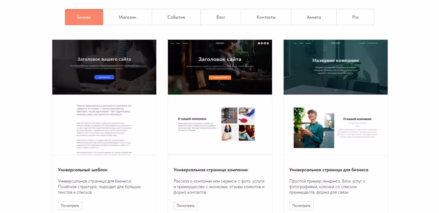 Это направление позволяет создавать любые сайты — от лендингов до интернет-магазинов. При выборе конструктора важно обращать внимание на количество шаблонов, которое он может предоставить. Чем больше — тем лучше.
