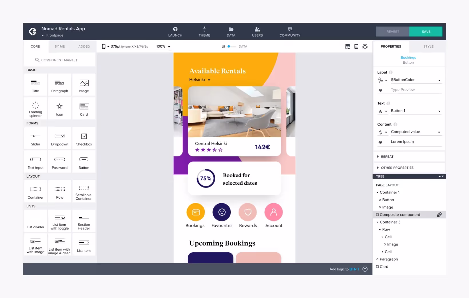 Так выглядит создание приложения на no-code платформе AppGyver: