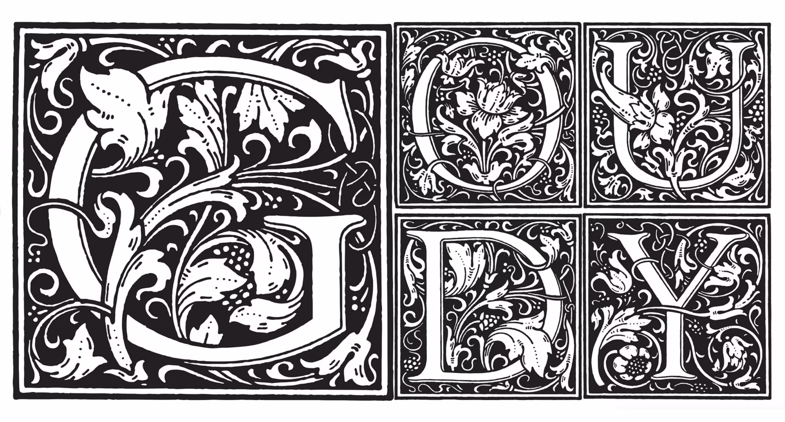Орнаментальные представляют собой шрифты с контуром, орнаментом и различными декоративными элементами. Например, Sapphire, Cloister Initials.