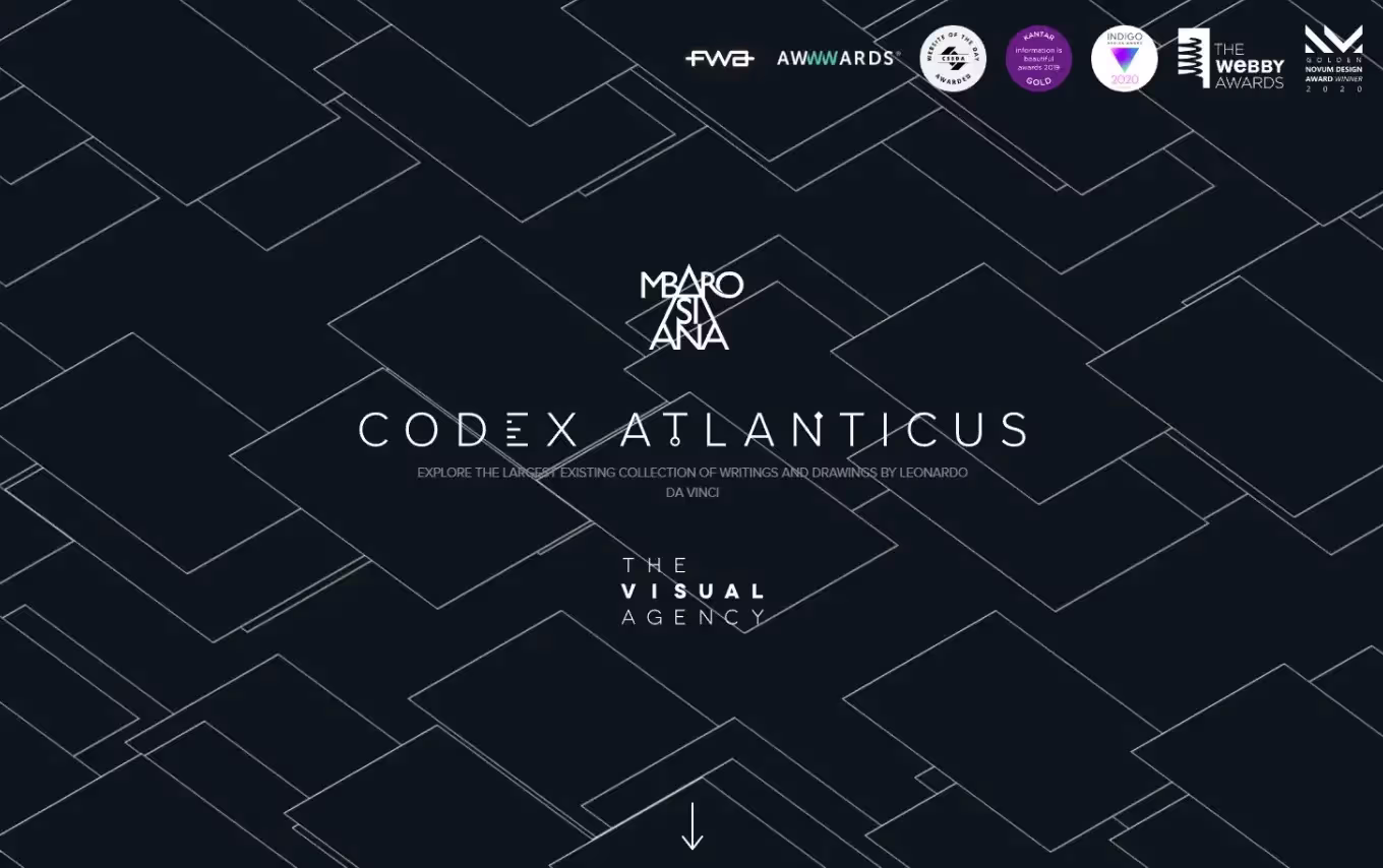 Этот интерактивный сайт собрал большое количество наград и представляет собой онлайн-портфолио великого художника и изобретателя. Здесь минималистичная изометрия — главный визуальный прием. В сочетании с анимацией она заставляет пользователя надолго задержаться, чтобы получше рассмотреть весь контент.