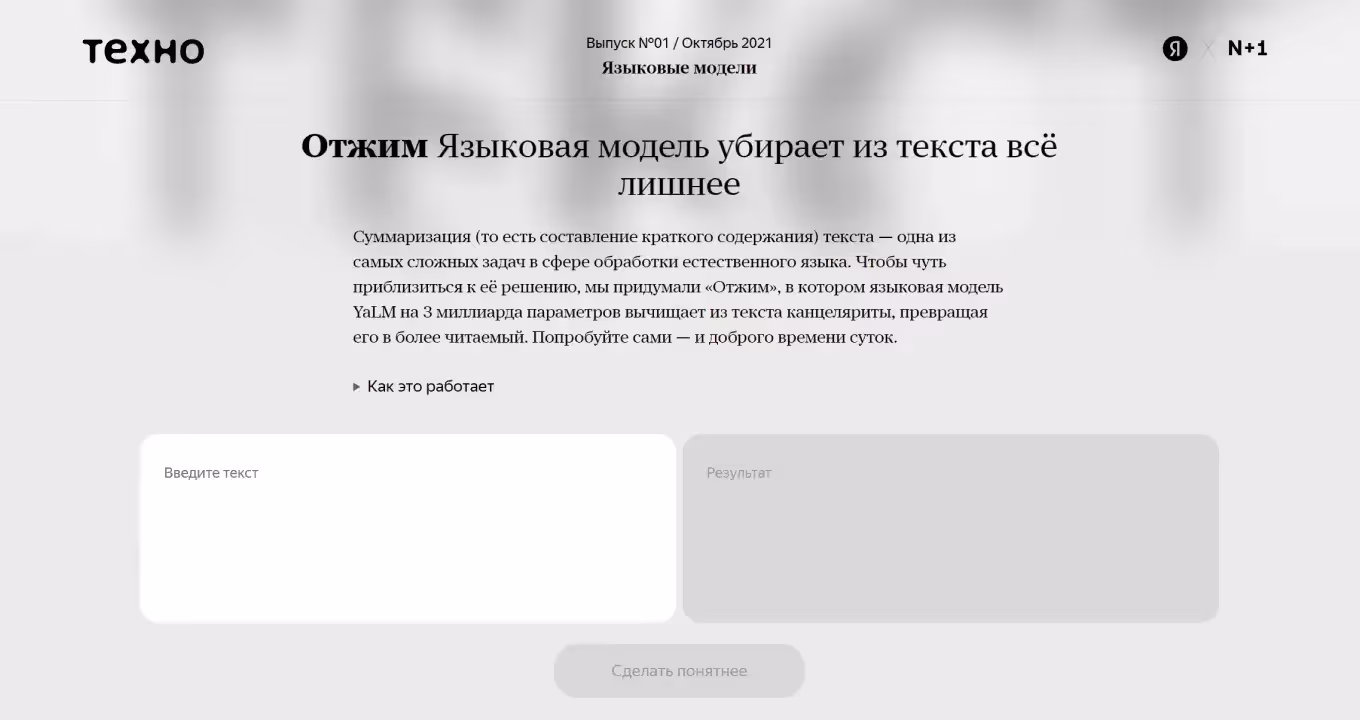 Сервис от Яндекса, который показывает краткое содержание текста, убирая из него канцелярит. Он помогает найти более понятные формулировки, делая материал более доступным для чтения.