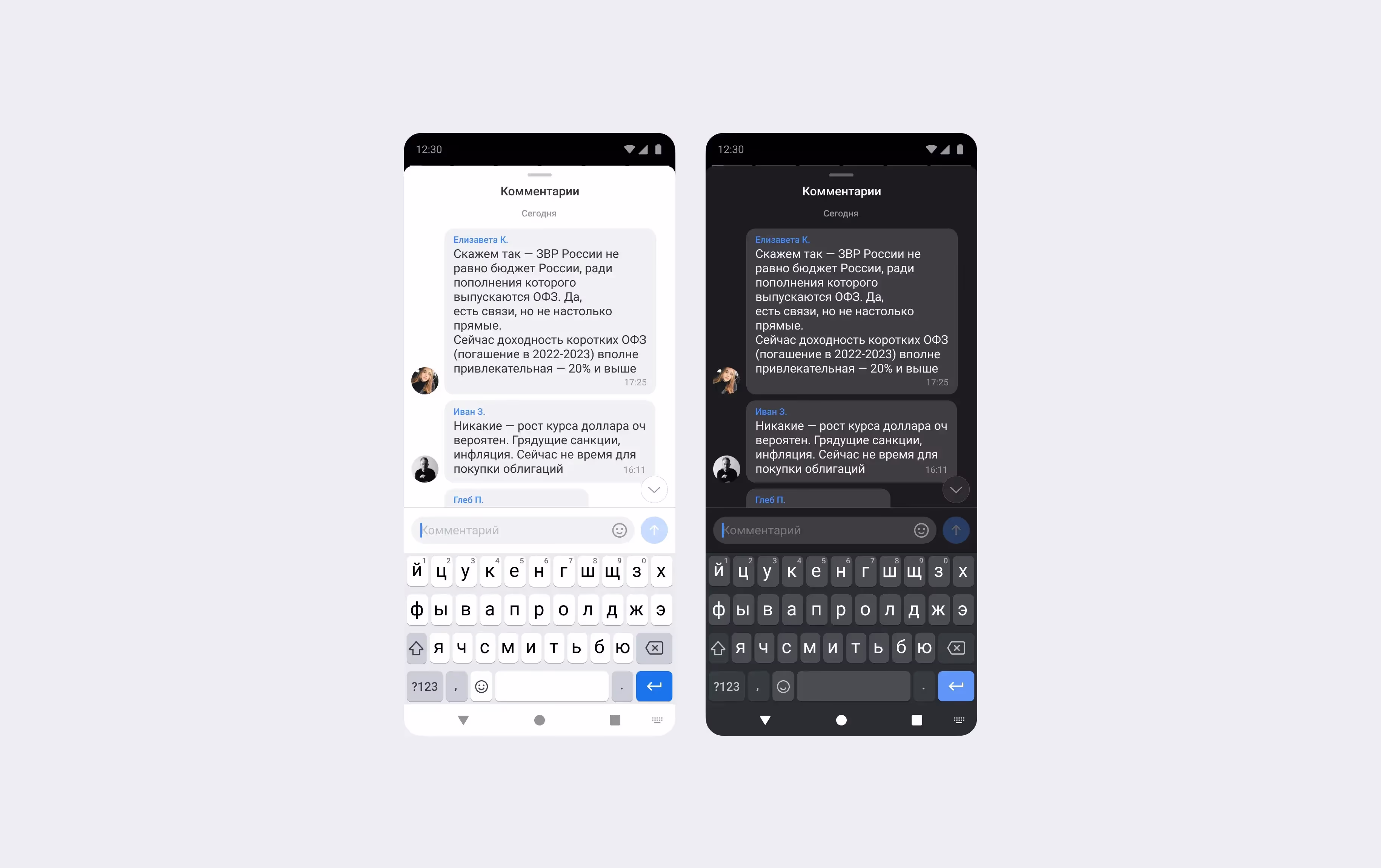 Первым шагом я посмотрел, как делают комментарии конкуренты. Глобально, все дизайны делятся на два типа: