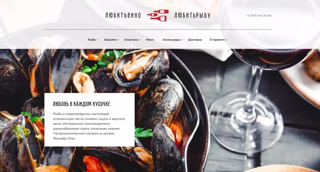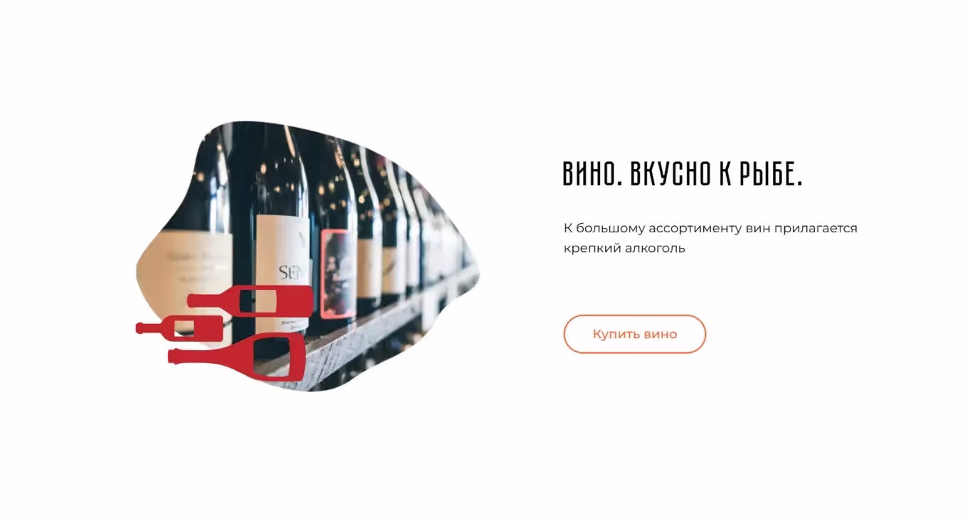 Для примера рассмотрим два варианта современных сайтов. Неудачный проект, который не раскрывает преимуществ продукта — сайт проекта «Любить вино. Любить рыбу».