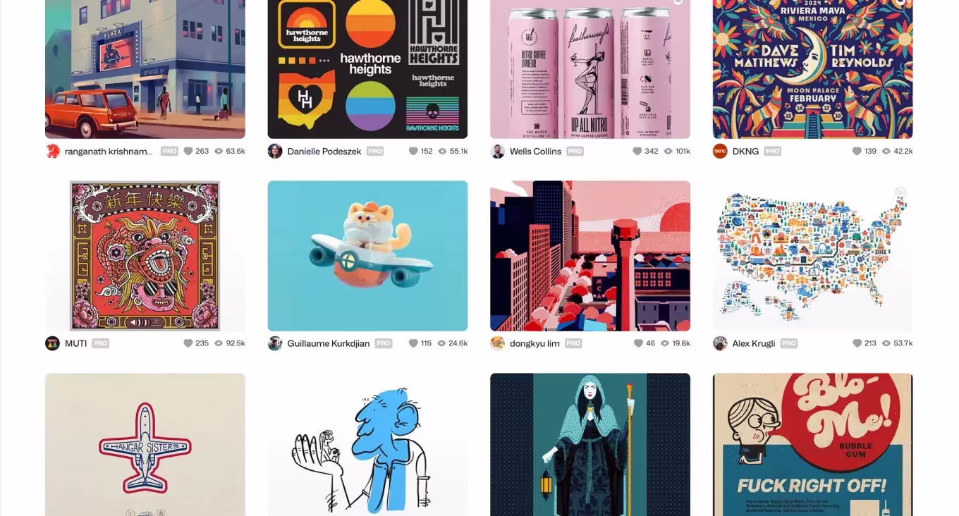 Платформа, где представлены работы дизайнеров различных областей: графические и веб-дизайнеры, иллюстраторы, 3D-визуализаторы и др. Участники публикуют свои работы и оценивают друг друга. Как и на Pinterest, на этой платформе вы можете встретить не только классные проекты, но и не очень удачные примеры начинающих дизайнеров. Рассматривайте этот сервис уже после того, как накопили визуальный опыт.