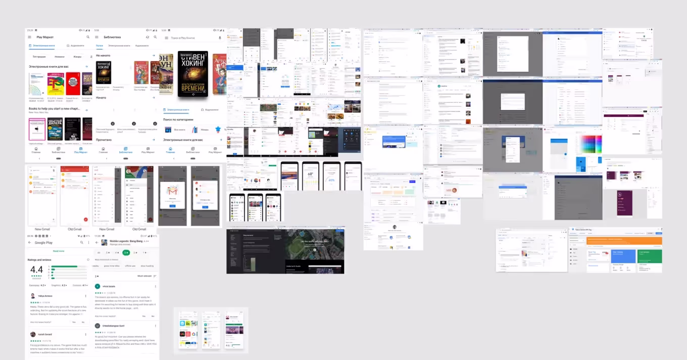После того, как референсы подобраны, их необходимо сгруппировать и организовать на мудборде — это может быть физическая доска с наклеенными на нее изображениями или электронный документ, созданный в графическом редакторе. Для создания мудборда веб-дизайнеры, в основном, используют графические редакторы, например Figma.