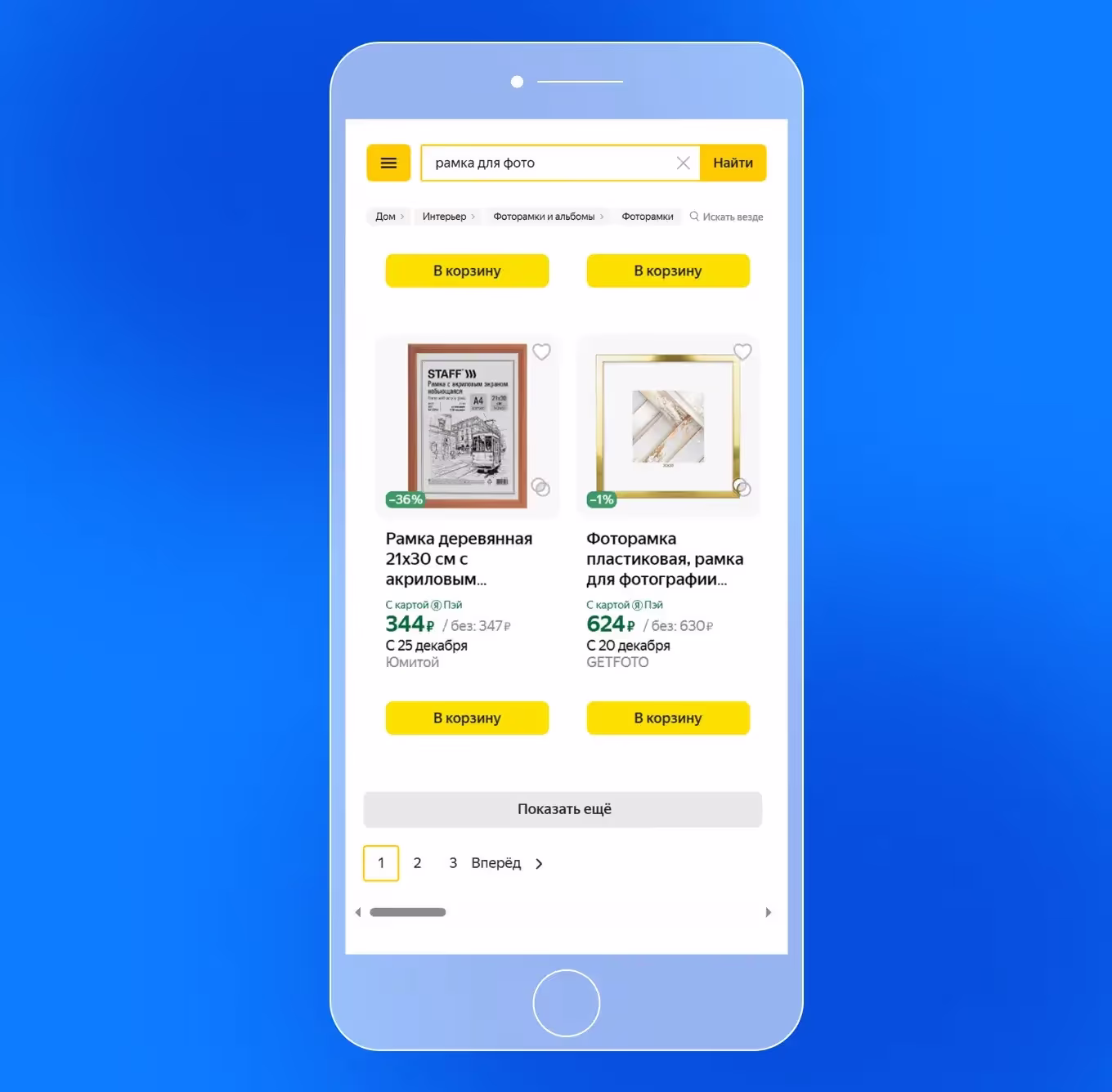 Используется, когда пользователи знают, что они ищут, и хотят увидеть несколько вариантов, но при этом сохранить контроль над процессом. Например, товары в интернет-магазинах.